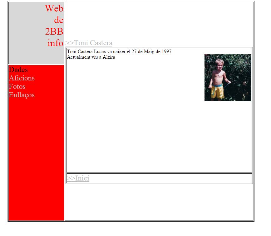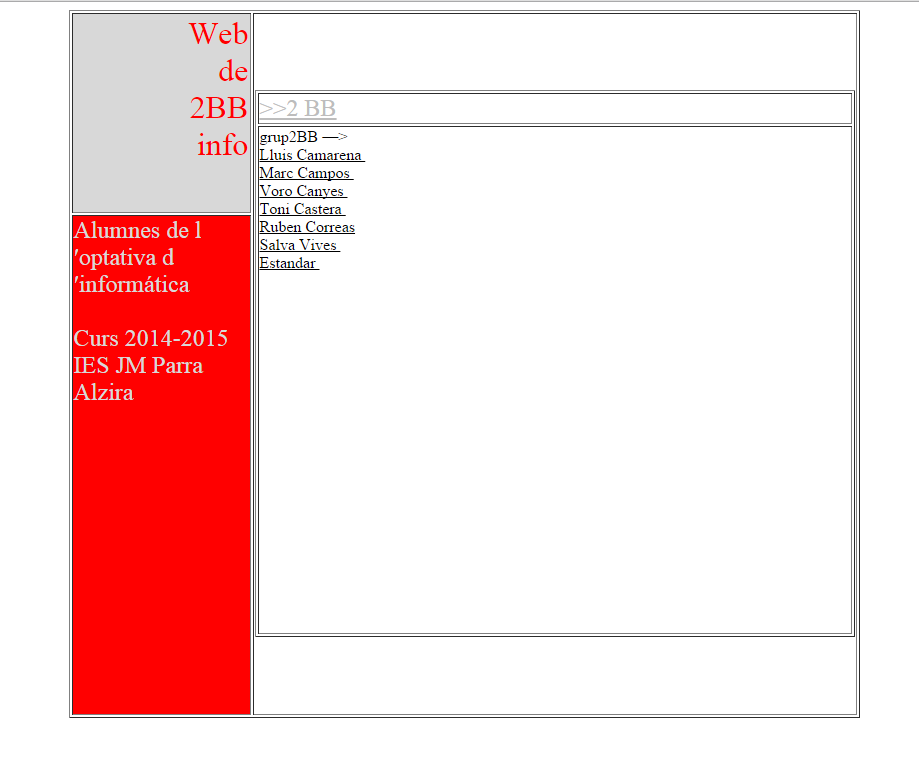 En la segona página hem creat la llista dels alumnes amb un enllaç a la seua pagina principal de cada alumnes.